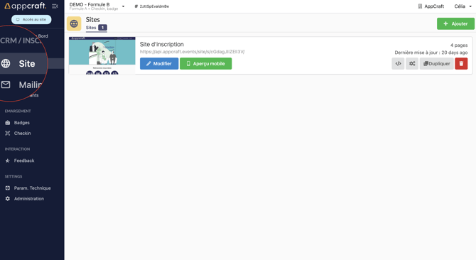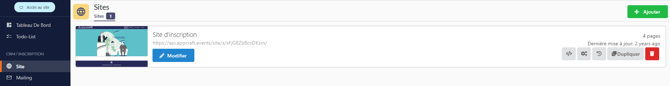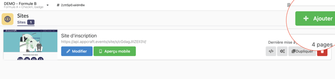 Pour votre événement, vous aurez la possibilité de créer plusieurs sites.