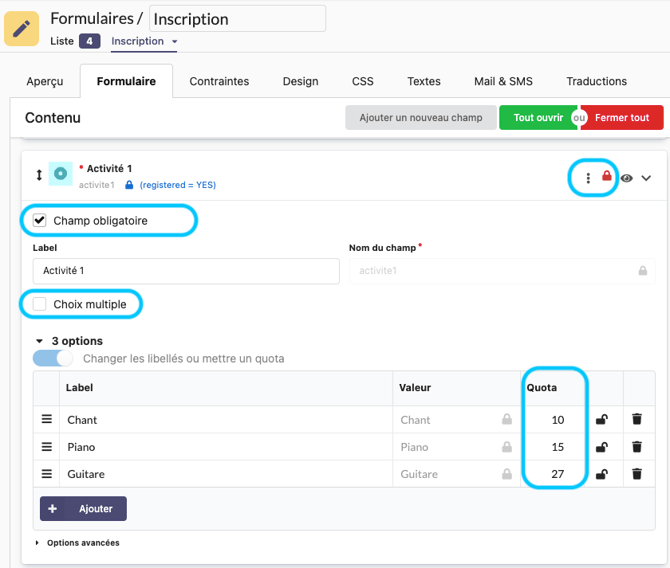 Vous souhaitez faire choisir une activité (avec un quota) a un participant