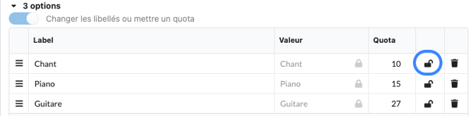 Il est également possible de conditionner l'affichage d'une option, en fonction d'une catégorie de participant en cliquant sur le cadenas de l'option :