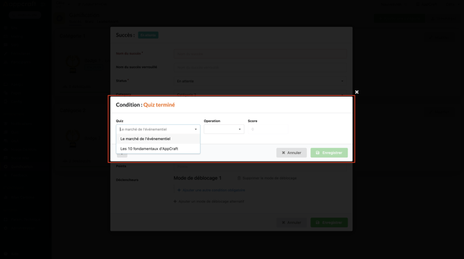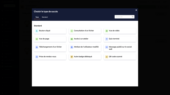 Cette action est liée à tous les quiz de votre plateforme, le participant débloquera un badge dès lors qu'il aura terminé le quiz souhaité.