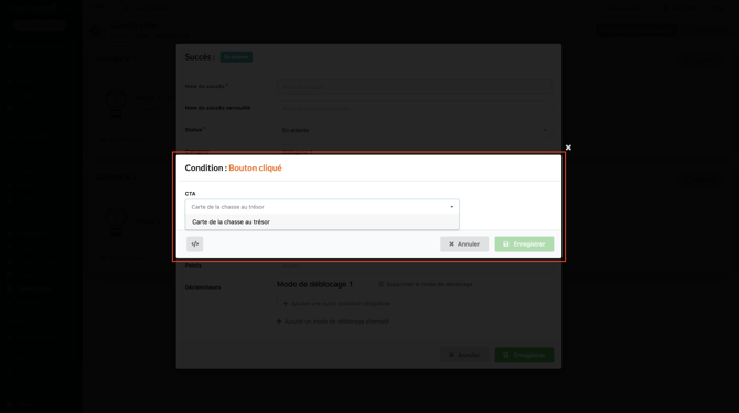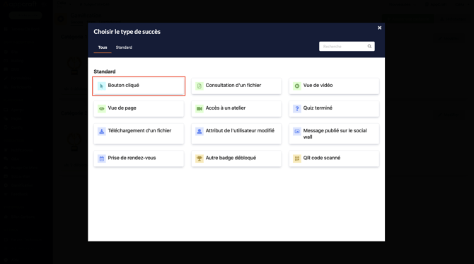 Cette action est liée à tous les blocs CTA de votre plateforme, le participant débloquera un badge au clic sur le bouton souhaité.