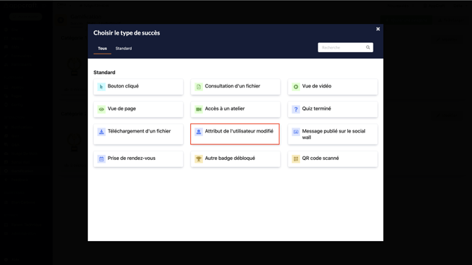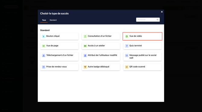Cette action est liée à tous les blocs Video de votre plateforme, le participant débloquera un badge dès lors qu'il aura visionné la vidéo souhaitée.
