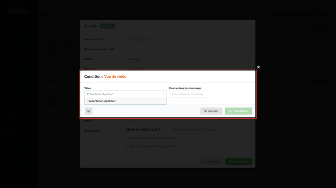 Vous devrez ensuite renseigner quel pourcentage de vidéo le participant devra regarder pour débloquer le badge.