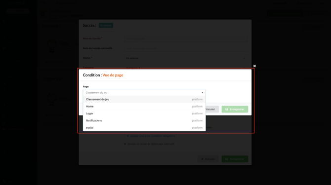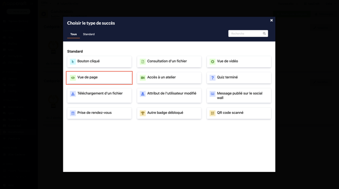 Cette action est liée à tous les pages de votre plateforme, le participant débloquera un badge dès lors qu'il aura visité la page souhaitée.