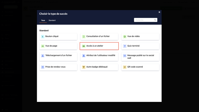 Cette action est liée à tous les badges déjà paramétrés pour votre gamification. Il permet aux participants de débloquer le badge final, une fois qu'ils auront obtenus tous les précédents.