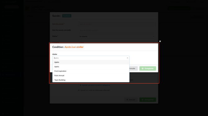 Lorsque vous sélectionnerez cette action, un menu déroulant vous affichera tous les badges existants et vous pourrez choisir ceux souhaités liés à ce badge final.