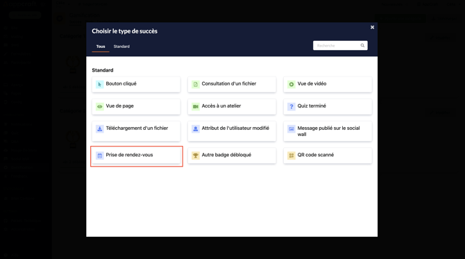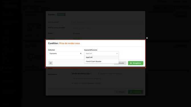 Cette action est liée à votre page spécifique Exposants de votre plateforme, le participant débloquera un badge dès qu'il aura pris un rendez-vous avec un de vos exposants.