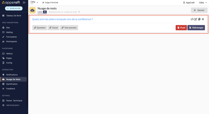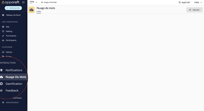 Vous retrouverez le module Nuage de mots dans la partie Interaction de votre back-office.