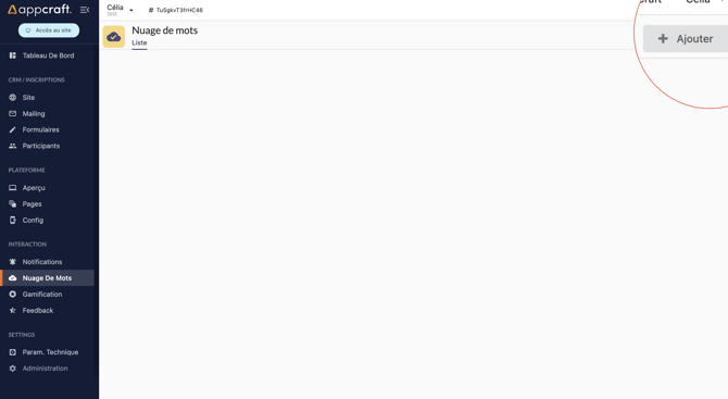 Pour créer son nuage de mots, cliquer sur le bouton Ajouter en haut à droite.