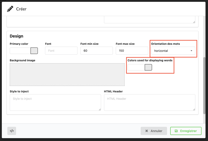 Une pop-up s'affiche, pour éditer votre nuage de mots.