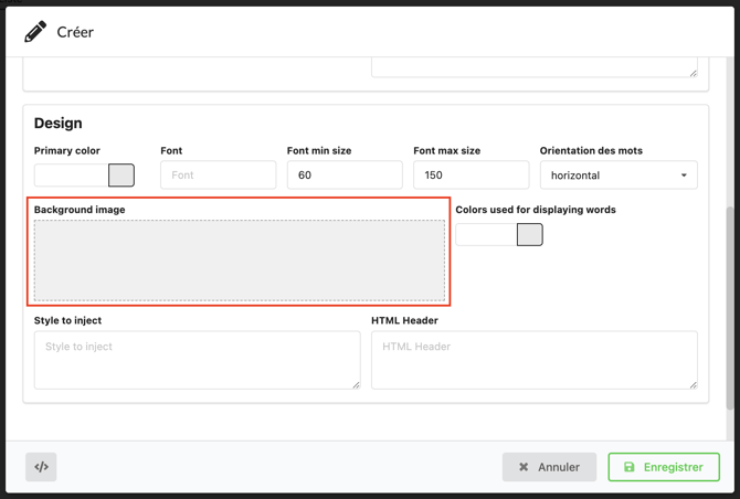 Enfin, vous pouvez importer une image de fond pour votre nuage dans Background image.