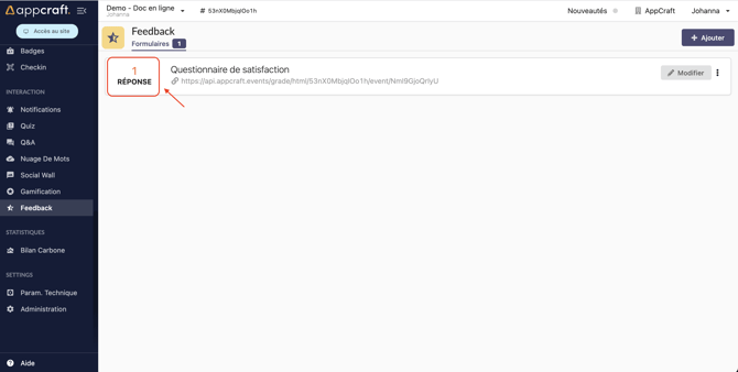 Le Feedback est accessible depuis le Back Office dans "Interaction" :