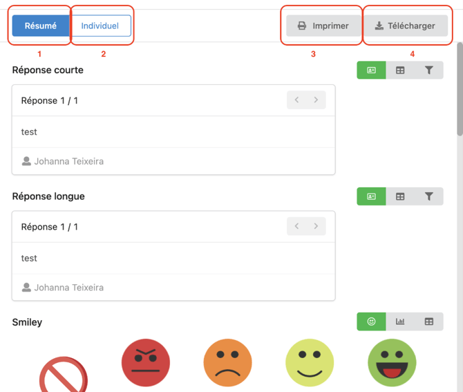 2- Vous donne les réponses données par participant. Si le feedback n'est pas anonyme vous saurez qui a répondu quoi