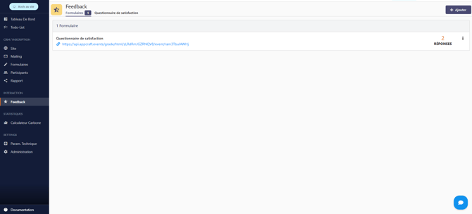 Les statistiques du questionnaire de satisfaction est accessible depuis le back office en cliquant sur réponses