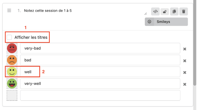 1. Afficher le texte associé au smiley