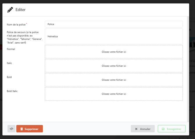 • Italic : Vous permet d'intégrer une police en italique