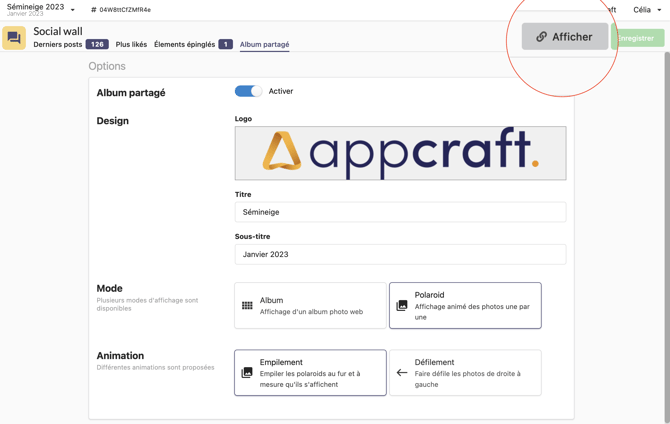 Pour voir le rendu, et récupérer le lien de votre album pour le partager, cliquer sur Afficher.