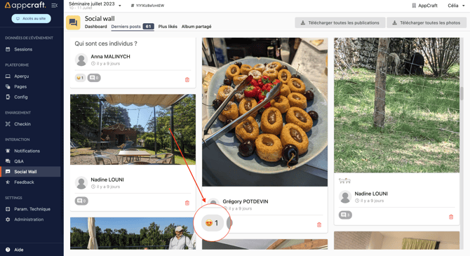 Le module Social wall vous permet de gérer les photos publiées par vos participants.