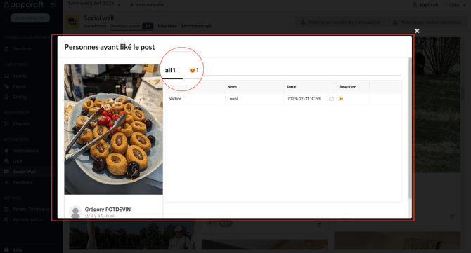 Vous pouvez également consulter le détail des réactions en cliquant sur l'emoji du post en question.