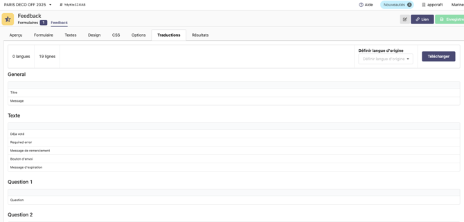 Si jamais vous faites une partie FEEDBACK, il faudra également choisir la langue d'origine et traduire en fonction des blocs.