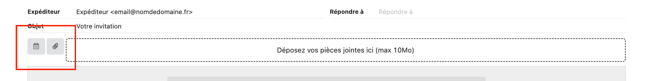 Le bouton représenté par l'icône trombone vous permet de joindre un fichier à votre e-mail ou de joindre le badge de l'évènement.