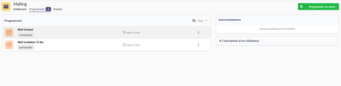 Vous retrouvez tous les Mails programmés dans cet onglet :
