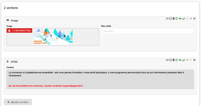 Ce bloc vous donne accès à divers éléments supplémentaires, tels que du texte, un bouton d'appel à l'action (CTA), une image ou un lien, afin d'enrichir l'expérience utilisateur.