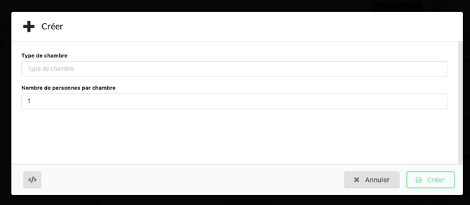 Nombre de personnes par chambre : ici, il faut renseigner le nombre de personne que peut accueillir la chambre. Si c'est 1 personne, alors 1 seule personne pourra être affecté à la chambre. Si c'est 2 par exemple pour une twin c'est minimum 2 / maximum 2. Une twin ne pourra pas être validée avec 1 seule personne dedans