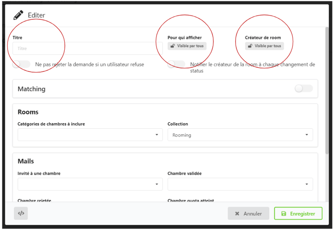- Créateur de room : Permet de filtrer les participants autorisés à faire des demandes de chambre