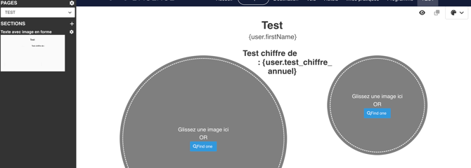 Par exemple si vous souhaitez afficher une section en fonction de certains critères, il vous faudra utiliser les mêmes parenthèses que dans les mailings mais avec {user.nominterne} ; en utilisant le nom de la colonne où les informations que vous souhaitez faire remonter sont présentes.