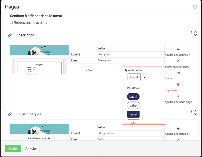 Personnaliser le type de bouton dans le menu