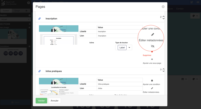 Pour référencer chacune des pages de votre site, cliquez sur Éditer métadonnées.