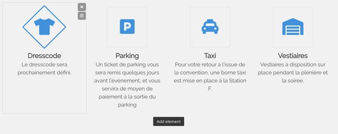 Pour ajouter un nouvel élément, il vous suffira de cliquer sur Add element en bas de la liste.