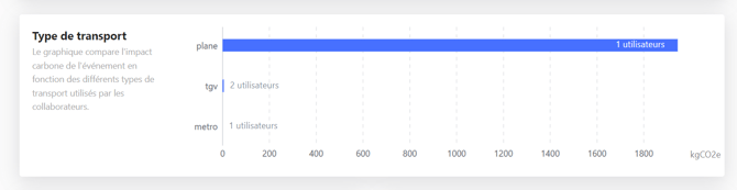 Le graphique compare l'impact carbone de l'événement en fonction des différents types de transport utilisés par les collaborateurs :