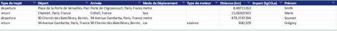 - Exemple du fichier "Empreinte carbone des trajets des participants"