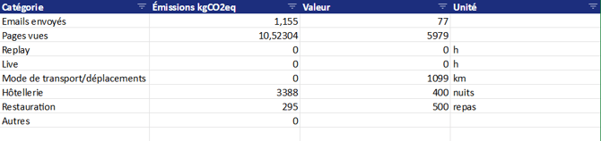 - Exemple du fichier "Empreinte carbone de votre événement"