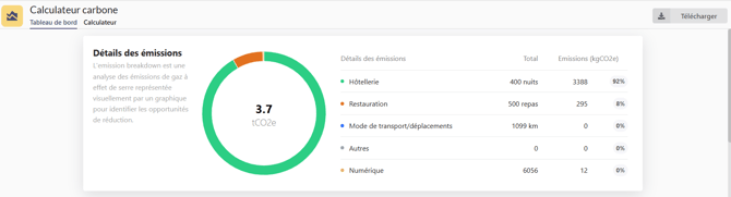 Le tableau de bord reprend les différentes informations relatives au bilan carbone de votre événement